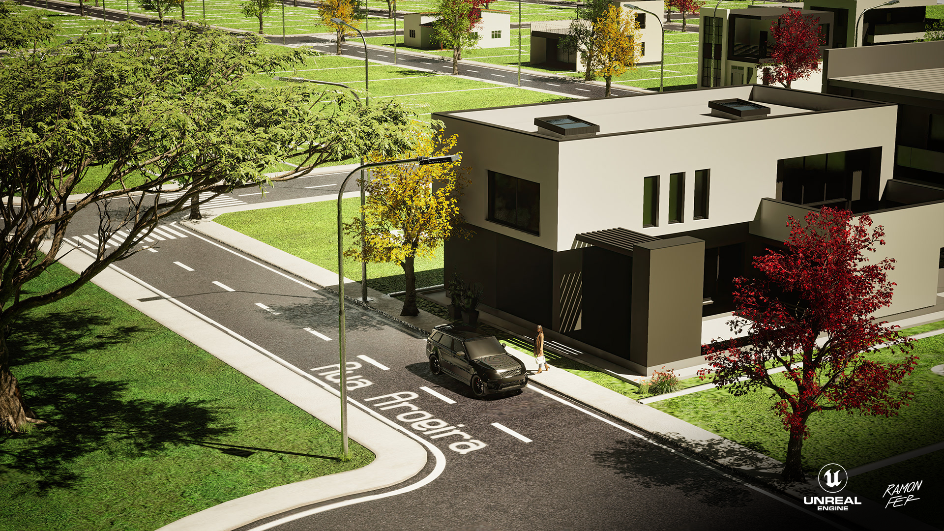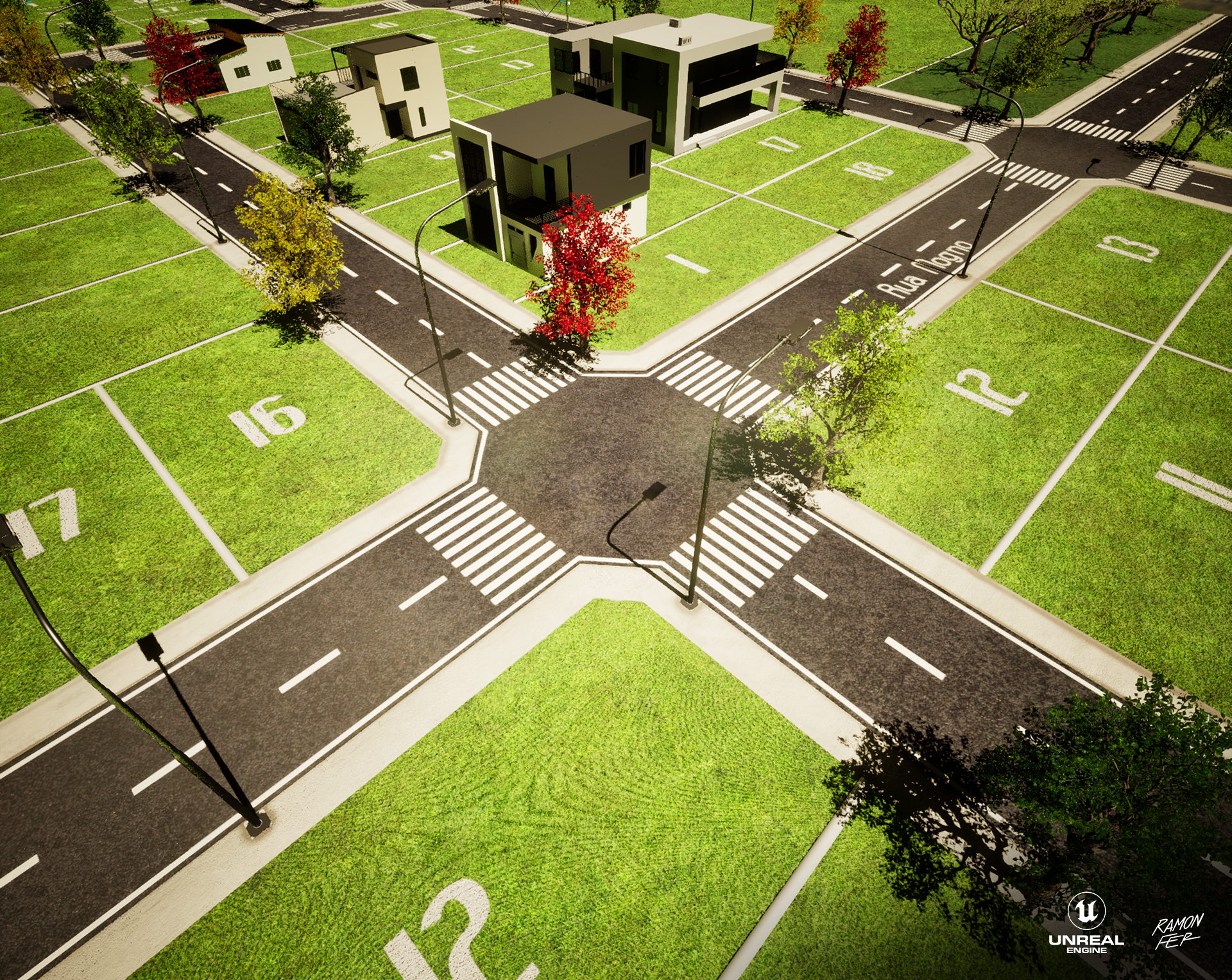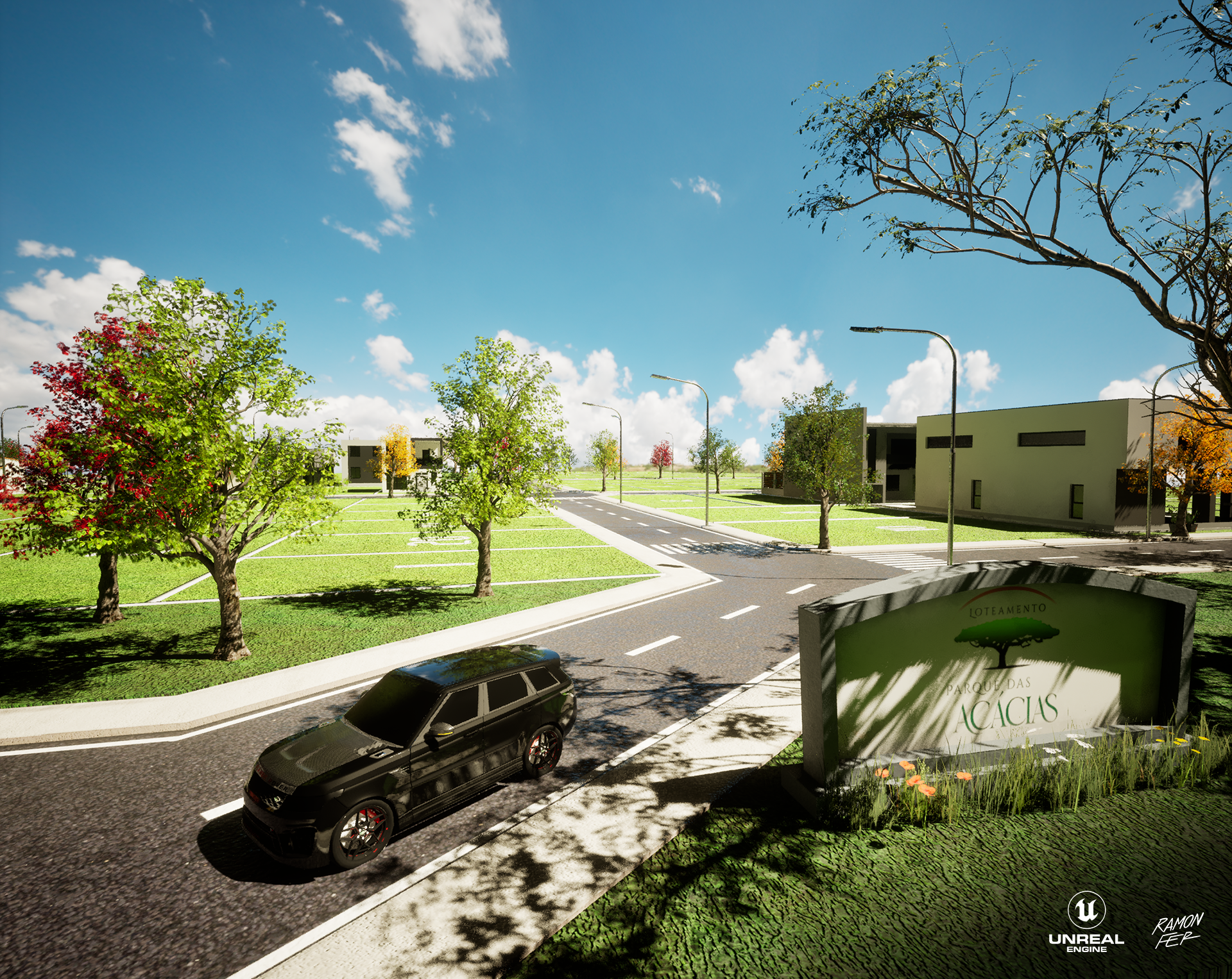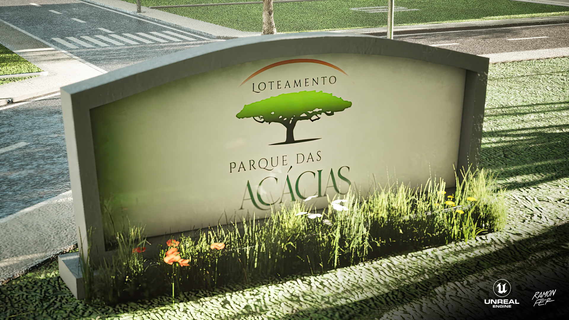 Apresento a maquete eletrônica do Loteamento Parque das Acácias, um projeto que exigiu decisões técnicas estratégicas para garantir a 𝘱𝘦𝘳𝘧𝘰𝘳𝘮𝘢𝘯𝘤𝘦 sem comprometer o impacto visual. O 𝘱𝘪𝘱𝘦𝘭𝘪𝘯𝘦 inicial envolveu a modelagem no Maya e texturização no Substance 3D Painter, com 𝘳𝘦𝘯𝘥𝘦𝘳𝘴 planejados para o Marmoset Toolbag 4. No entanto, a alta contagem de polígonos, majoritariamente das volumosas árvores, impôs um desafio crítico de otimização e gestão de memória. A solução técnica foi a migração estratégica para a Unreal Engine 5. Aproveitando os robustos sistemas de otimização e gerenciamento de ativos da UE5, como o Nanite e os sistemas de LOD (𝘓𝘦𝘷𝘦𝘭 𝘰𝘧 𝘋𝘦𝘵𝘢𝘪𝘭), consegui lidar com a densa geometria de forma eficiente. Esta mudança não apenas solucionou o gargalo de memória, mas também permitiu a entrega de resultados visuais de altíssimo nível, demonstrando adaptabilidade e proficiência no domínio de ferramentas 𝘴𝘵𝘢𝘵𝘦-𝘰𝘧-𝘵𝘩𝘦-𝘢𝘳𝘵 na visualização arquitetônica.