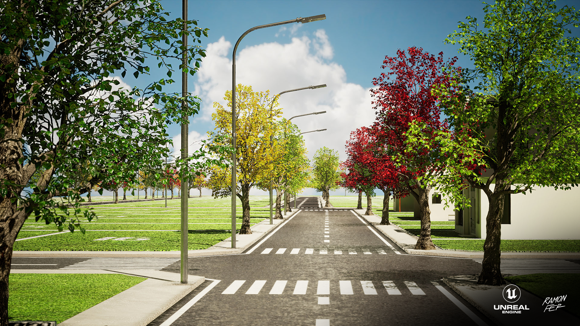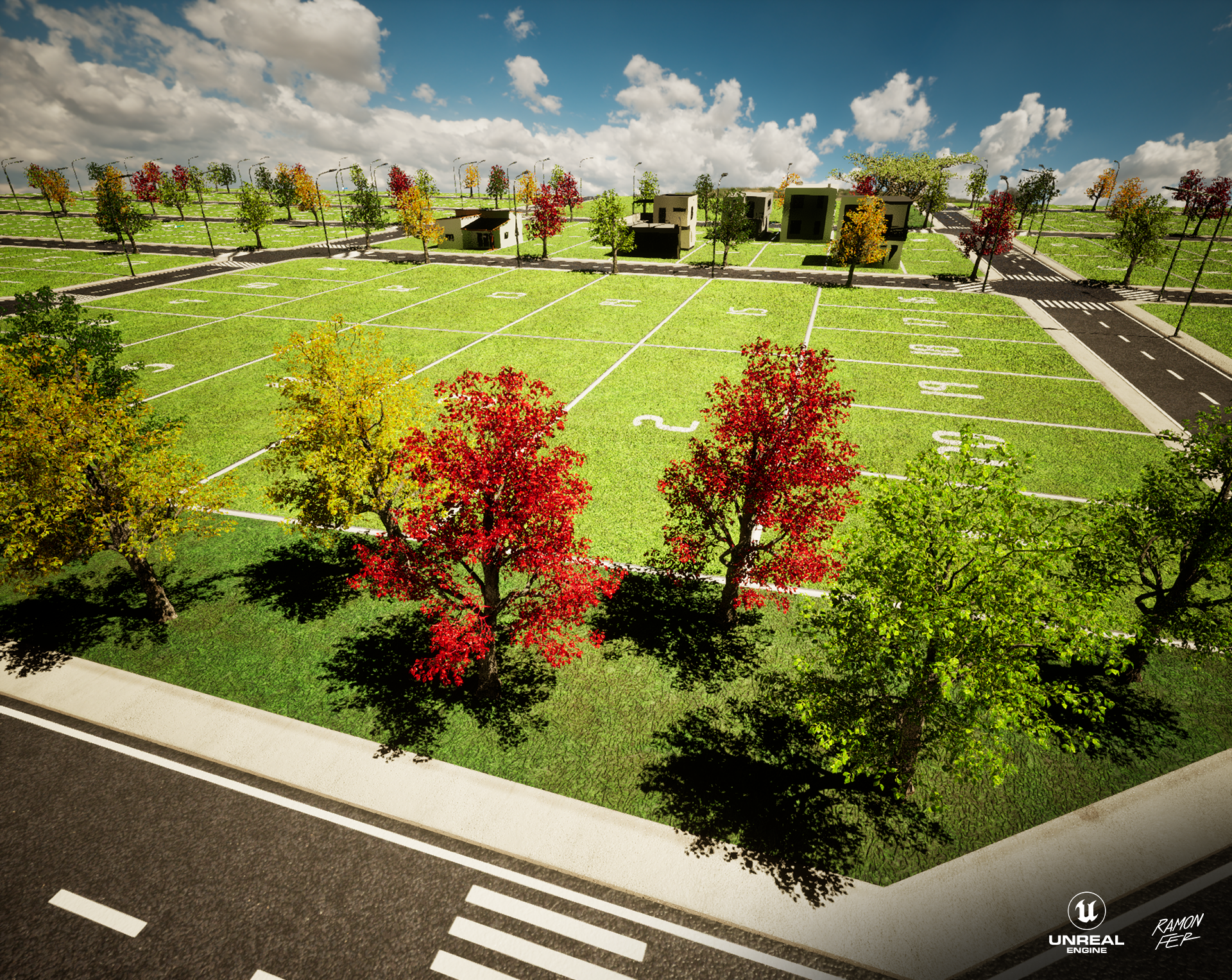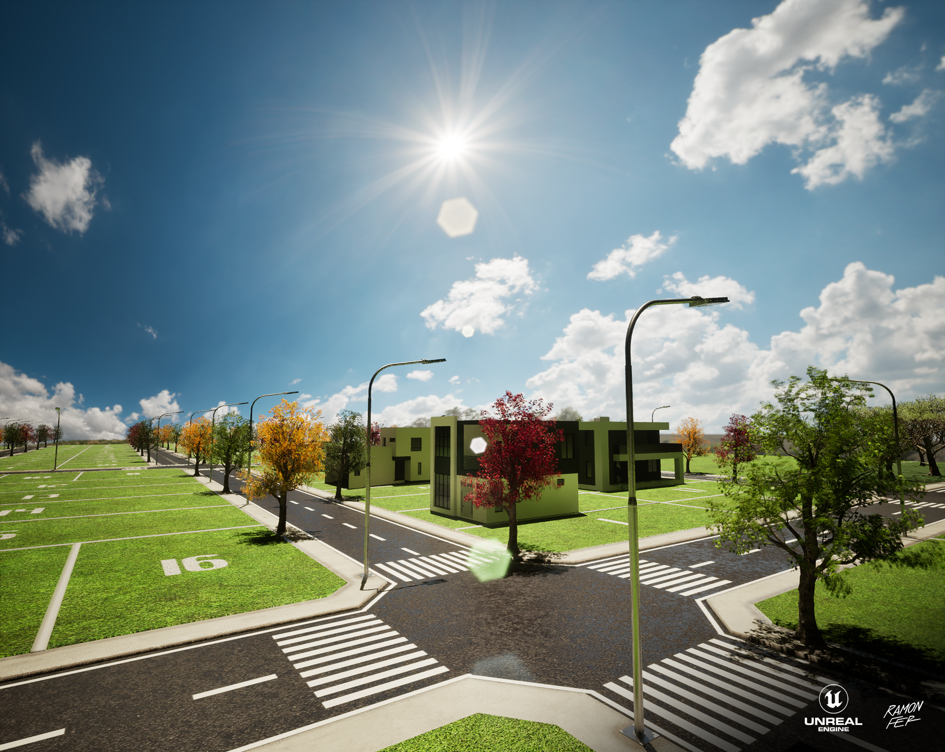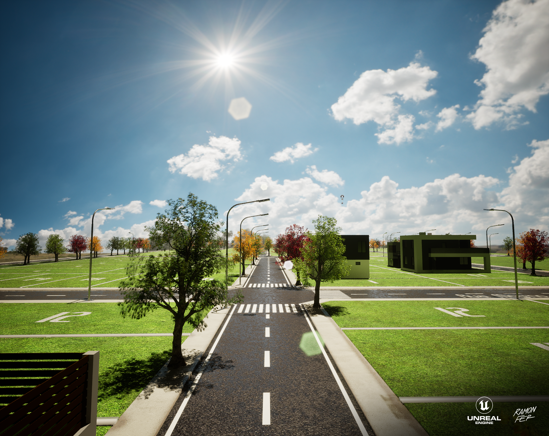 Apresento a maquete eletrônica do Loteamento Parque das Acácias, um projeto que exigiu decisões técnicas estratégicas para garantir a 𝘱𝘦𝘳𝘧𝘰𝘳𝘮𝘢𝘯𝘤𝘦 sem comprometer o impacto visual. O 𝘱𝘪𝘱𝘦𝘭𝘪𝘯𝘦 inicial envolveu a modelagem no Maya e texturização no Substance 3D Painter, com 𝘳𝘦𝘯𝘥𝘦𝘳𝘴 planejados para o Marmoset Toolbag 4. No entanto, a alta contagem de polígonos, majoritariamente das volumosas árvores, impôs um desafio crítico de otimização e gestão de memória. A solução técnica foi a migração estratégica para a Unreal Engine 5. Aproveitando os robustos sistemas de otimização e gerenciamento de ativos da UE5, como o Nanite e os sistemas de LOD (𝘓𝘦𝘷𝘦𝘭 𝘰𝘧 𝘋𝘦𝘵𝘢𝘪𝘭), consegui lidar com a densa geometria de forma eficiente. Esta mudança não apenas solucionou o gargalo de memória, mas também permitiu a entrega de resultados visuais de altíssimo nível, demonstrando adaptabilidade e proficiência no domínio de ferramentas 𝘴𝘵𝘢𝘵𝘦-𝘰𝘧-𝘵𝘩𝘦-𝘢𝘳𝘵 na visualização arquitetônica.